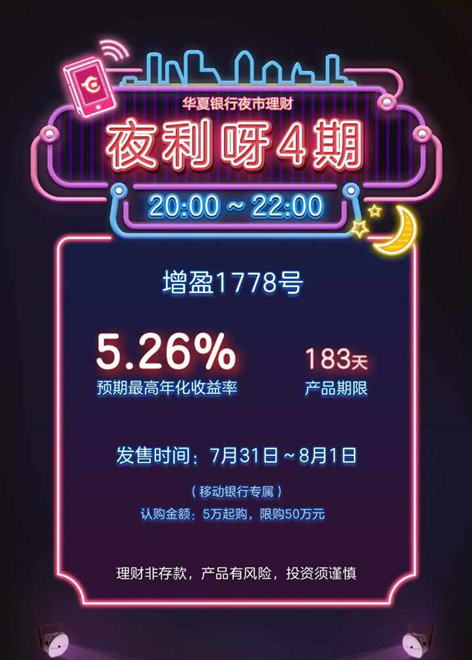 盛夏一到,夜市開始紅火,銀行也來湊熱鬧。華夏銀行推出預(yù)期年化收益率5.26%的“夜市”理財(cái)產(chǎn)品。