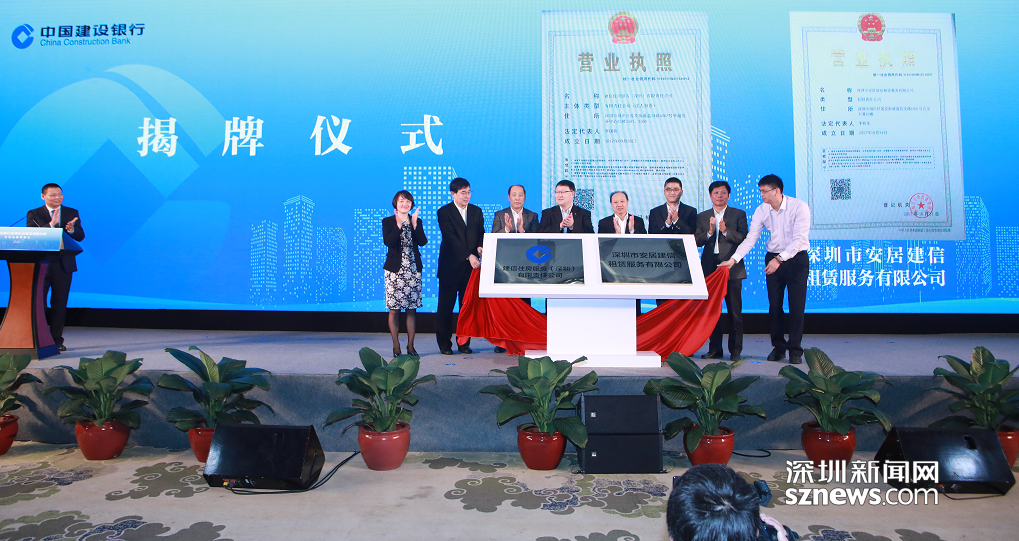 現(xiàn)場,建行參與投資的2家住房租賃服務(wù)公司——由建信信托控股的建信住房服務(wù)(深圳)有限公司(以下簡稱“建信住房”)及建行與深圳市人才安居集團(tuán)合資的安居建信租賃服務(wù)有限公司正式揭牌。