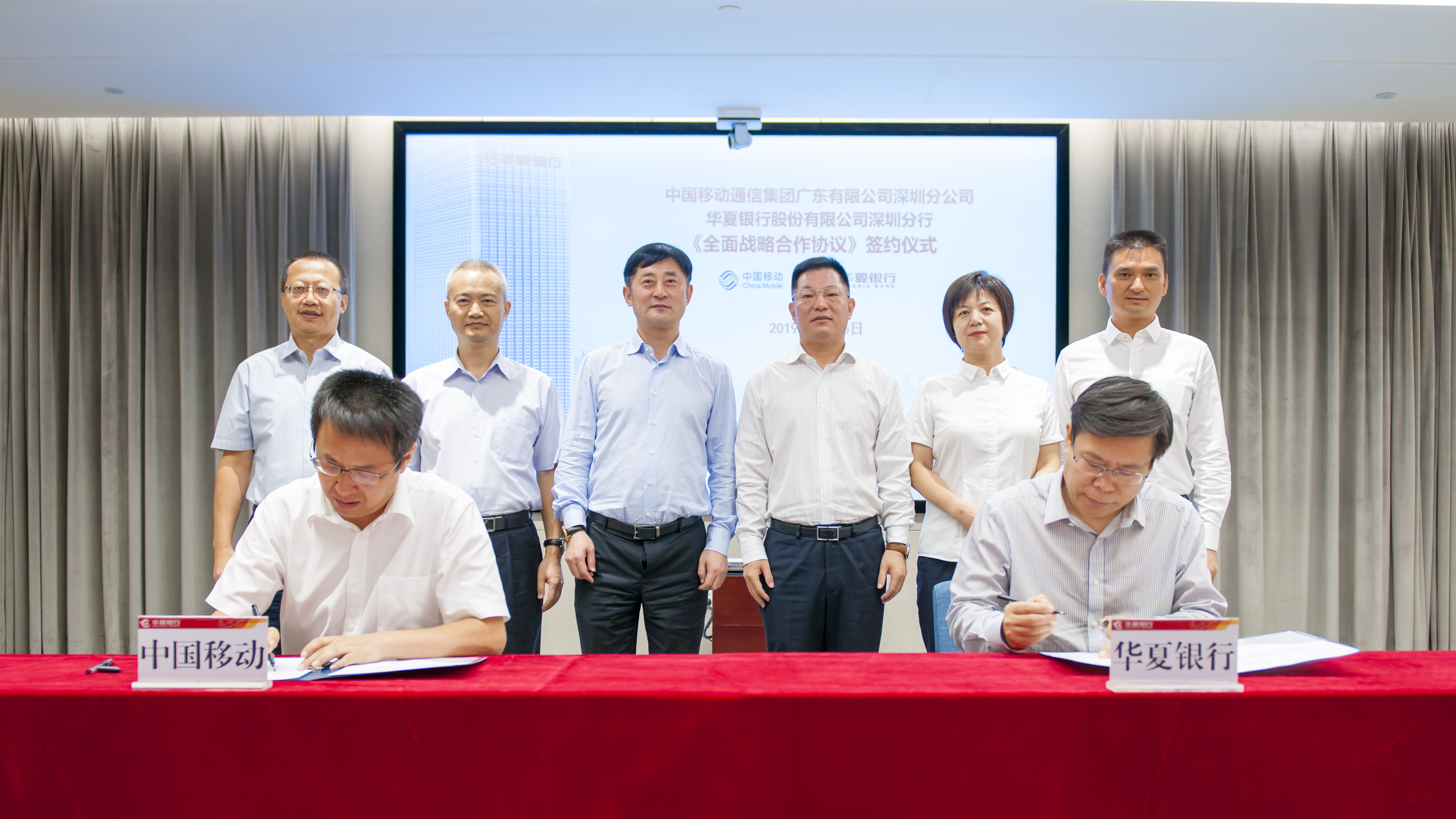 簽約儀式前,華夏銀行深圳分行受總行委托向中國移動通信集團有限公司頒發(fā)“總行級戰(zhàn)略客戶”牌匾。