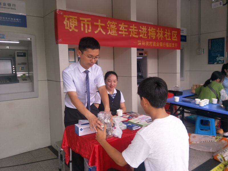 深圳新聞網(wǎng)訊 為深入貫徹黨的十九大精神,積極落實普惠金融政策,優(yōu)化現(xiàn)金流通環(huán)境,提升現(xiàn)金服務水平,深圳農村商業(yè)銀行梅林支行積極落實現(xiàn)金服務示范區(qū)工作,并于8月3日攜手威豹押運公司走進梅林社區(qū),舉辦了硬幣兌換大篷車活動。