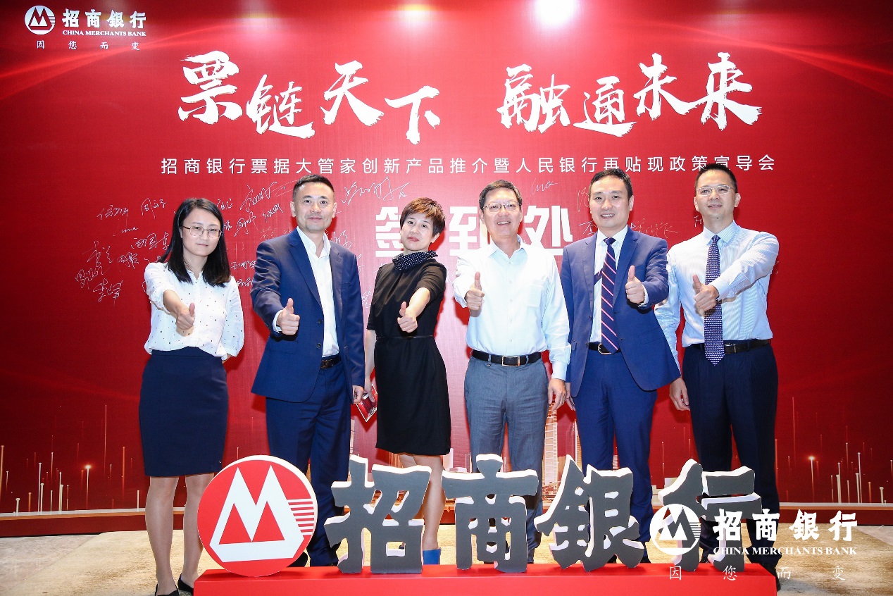 2019年11月15日,招商銀行攜手中國人民銀行深圳市中心支行在深圳成功舉辦“2019招商銀行票據(jù)大管家創(chuàng)新產(chǎn)品推介會(huì)暨人民銀行再貼現(xiàn)政策宣導(dǎo)會(huì)”。本次推介會(huì)以“票鏈天下?融通未來”為主題,來自華為、TCL、富士康、中興通訊、創(chuàng)維、深圳水務(wù)等100余家企業(yè)代表出席,共同探討票交所時(shí)代下票據(jù)管理、融資以及創(chuàng)新產(chǎn)品實(shí)踐。中國人民銀行深圳市中心支行貨幣信貸管理處出席推介會(huì),隆重介紹即將推出的人民銀行普惠金融貼現(xiàn)政策——“商票通”。招商銀行總行票據(jù)業(yè)務(wù)部黃斌總經(jīng)理、招商銀行總行研究院譚海鳴副院長、招商銀行深圳分行曾令武行長助理及招商銀行深圳分行票據(jù)業(yè)務(wù)部張衍松總經(jīng)理共同參與了此次活動(dòng)。