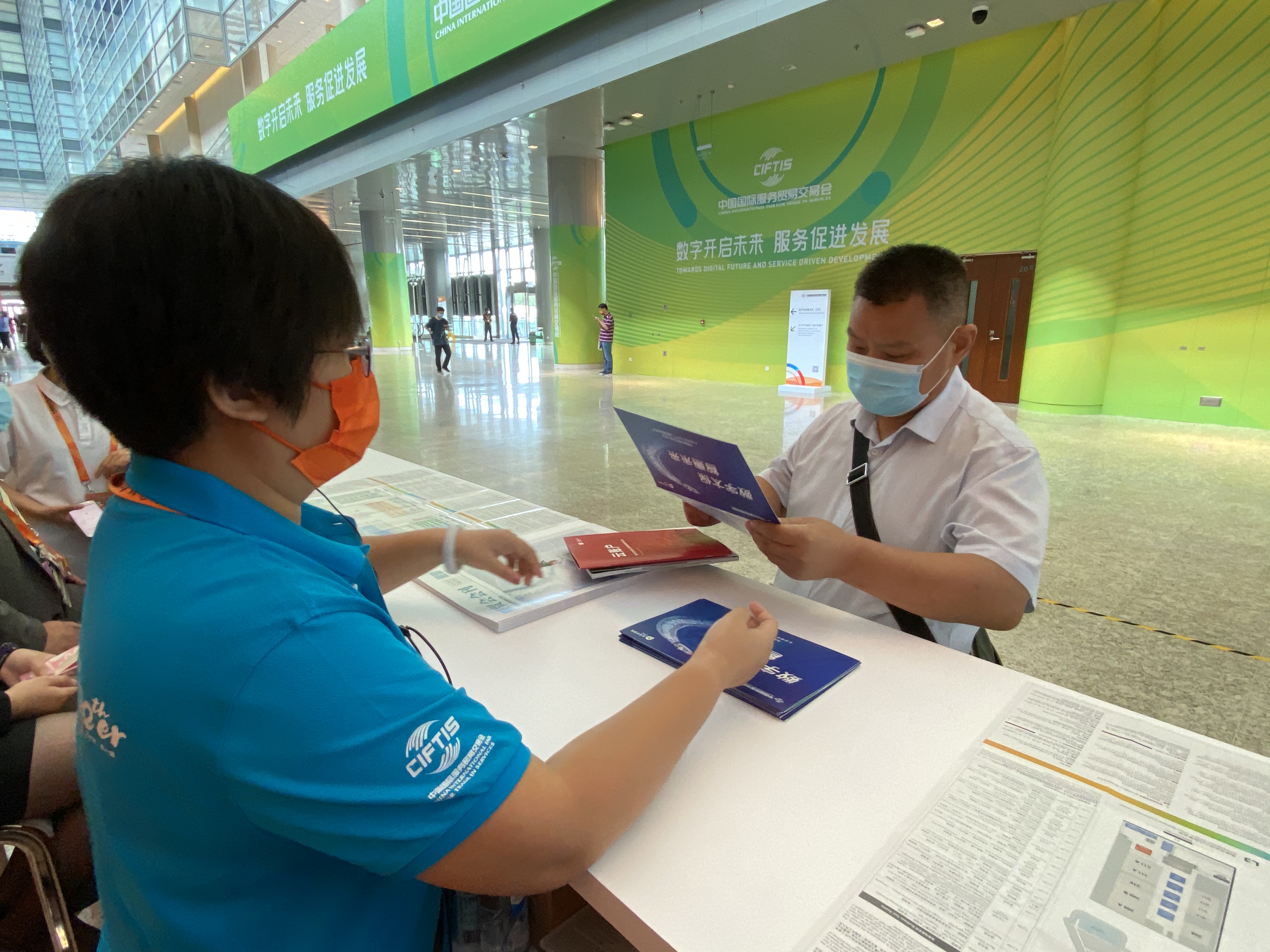 9月3日下午,一位女士焦急的地在服貿(mào)會(huì)首鋼園區(qū)攔住了中國太保工作人員王文雨和周銳。