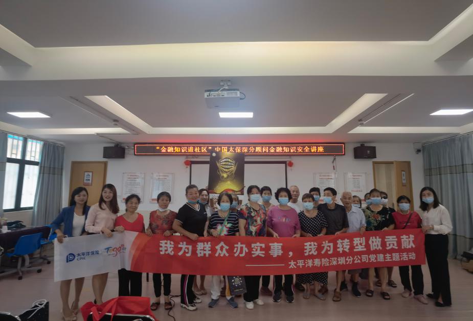 9月17日上午,中國太保壽險(xiǎn)深圳分公司黨委組織部與業(yè)務(wù)條線的黨員、職工及營銷一線人員走進(jìn)華富街道田面社區(qū),面向社區(qū)的老年群體,開展了“金融知識進(jìn)社區(qū)”金融知識講座。本次活動(dòng)以普及金融知識、宣講紅色金融史為主題,一是聚焦容易受到詐騙的老年群體,突出理性投資等宣傳教育重點(diǎn),積極開展金融宣傳教育,加強(qiáng)知識普及和風(fēng)險(xiǎn)提示,防范金融詐騙活動(dòng);二是堅(jiān)持黨建引領(lǐng),緊密結(jié)合在黨和群眾中開展黨史學(xué)習(xí)教育工作的有關(guān)部署,大力宣傳紅色金融史,積極與群眾面對面、做基層宣講員,持續(xù)推動(dòng)黨史學(xué)習(xí)教育走深走實(shí)。