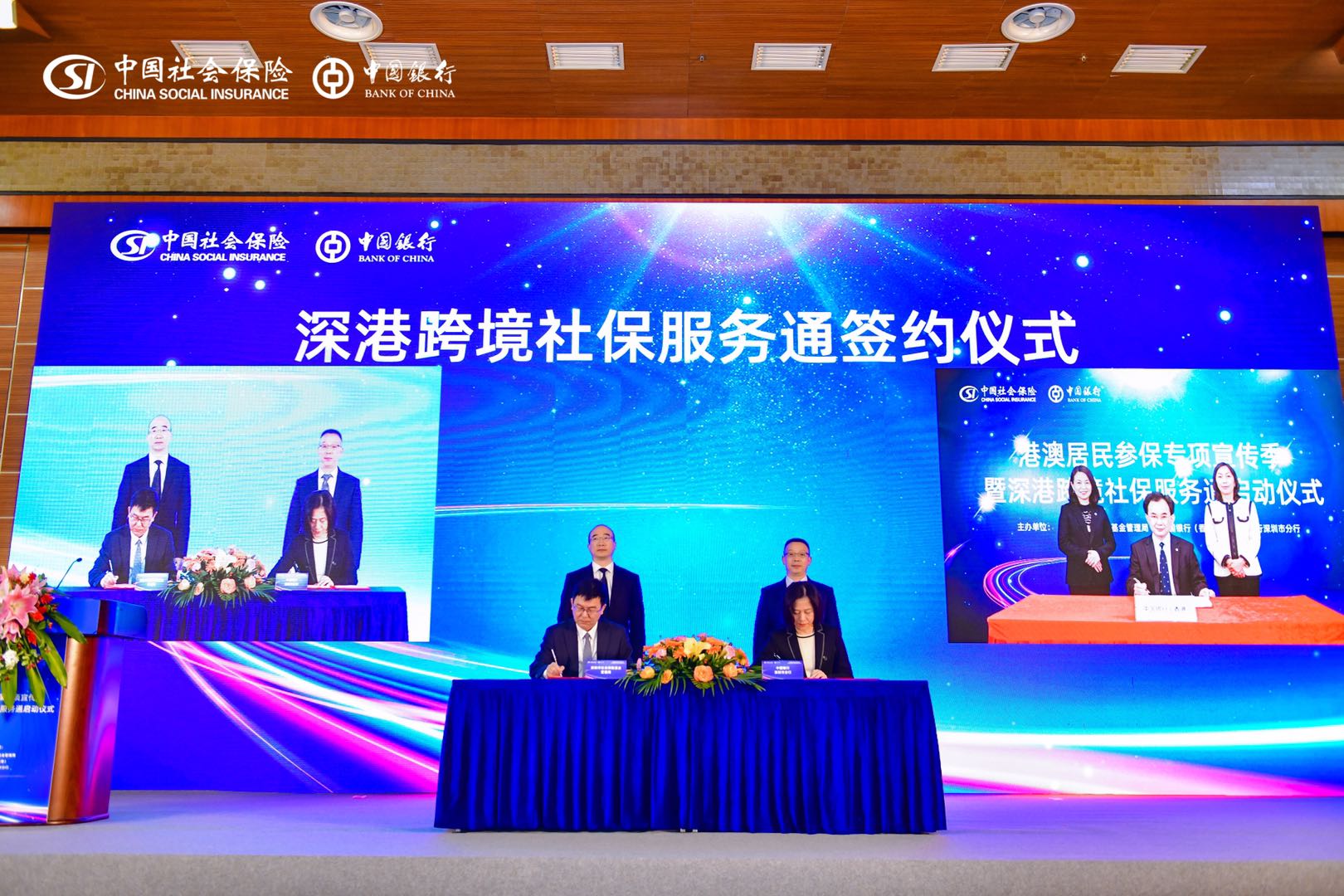 市人力資源保障局黨組書記、局長趙忠良在致辭中表示,深圳市社保局與中銀香港、深圳中行啟動社銀合作,正式開啟了深港社??缇撤?wù)新局面。未來將與中行共同攜手宣傳港澳居民參保政策,不斷優(yōu)化跨境社保服務(wù)質(zhì)量,讓港澳居民在深學(xué)習(xí)、就業(yè)、創(chuàng)業(yè)、生活更加便利,攜手為推動深港社保領(lǐng)域高質(zhì)量合作、推進港澳融入國家和粵港澳大灣區(qū)發(fā)展大局作出積極貢獻。