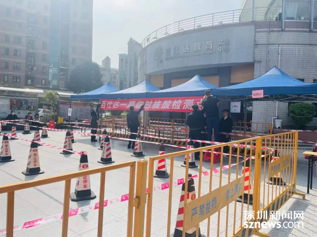 羅湖區(qū)翠竹街道翠達(dá)社區(qū)百事達(dá)花園一期,臨時(shí)搭建核酸檢測(cè)點(diǎn)