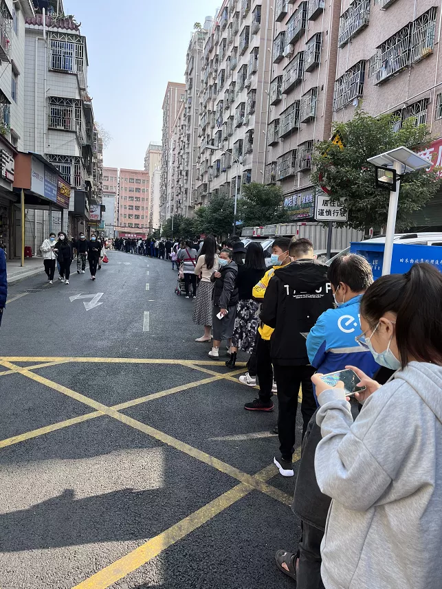 蓮塘富達(dá)花園,按照市、區(qū)防疫部門要求,街道對(duì)轄區(qū)居民進(jìn)行全員核酸檢測(cè),小區(qū)居民積極配合,在小區(qū)門口完成檢測(cè)后才能離開,不需外出的居民也安排到小區(qū)內(nèi)核酸檢測(cè)點(diǎn)進(jìn)行全員核酸檢測(cè)。