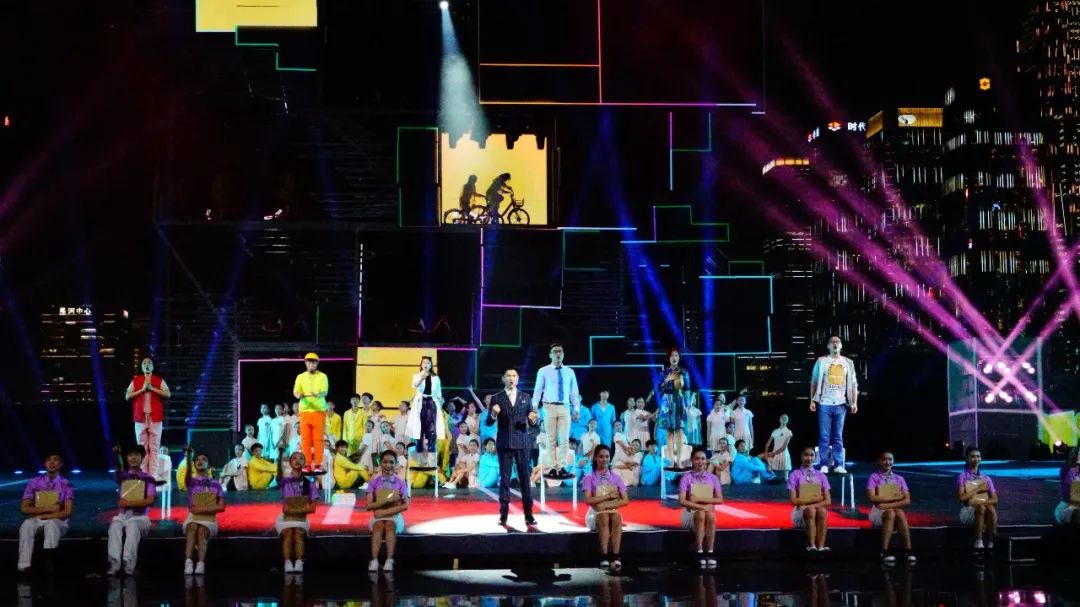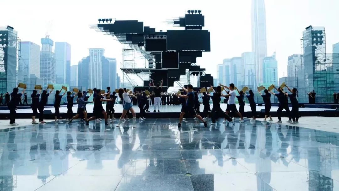 主題曲《新的一天》整首歌以小見大,用年輕上班族的拼搏精神體現(xiàn)深圳人共性,引領(lǐng)時代進步潮流。“ 拒絕空想冒險/誰不渴望明天/有夢就要實現(xiàn) ”,交織的夢想成就了深圳?!? 新的一天就在眼前/我的命運我要自己改變 ”,改革開放賦予了這個時代勇敢堅持的精神。為了排演這個節(jié)目,導(dǎo)演卓依·馬可尼利和全體演員歷經(jīng)了一個月的排練,克服了演出場地露天的高溫,在整個節(jié)目近五分鐘的時長里,展現(xiàn)了新時代青年對于工作的拼勁與堅韌、活力和激情,彰顯了剛?cè)嵯酀?、自強不息的深圳精神?nbsp;