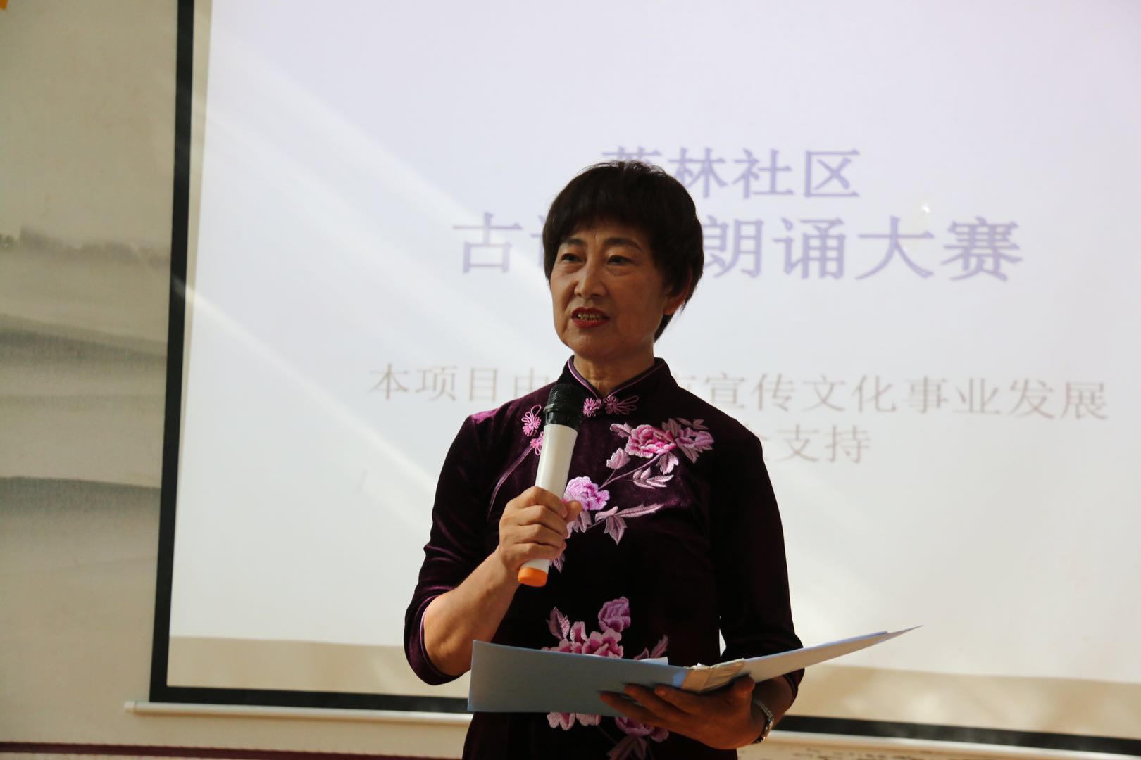來自荔林社區(qū)的13位參賽選手參加了本次朗誦大賽,他們朗誦的作品都是家喻戶曉的千古名篇,獲得了社區(qū)居民的真摯喜愛,活動現(xiàn)場掌聲與喝彩聲經(jīng)久不息。整場朗誦大賽內(nèi)容豐富、情感深摯,引人入勝。既有飽含深摯情感的《無題》、訴說人世間悲歡離合的《水調(diào)歌頭》、凄楚而不無激越的《虞美人》,也有蕩氣回腸的《臨江仙》、氣勢磅礴的《滿江紅》和氣概豪邁的《觀獵》。而《望月懷遠》、《登金陵鳳凰臺》、《春夜喜雨》、《望岳》又將大家?guī)Щ亓耸⑻?,用朗誦的聲音讓我們與盛唐的詩人進行了一場跨時空的交流?!赌吧仙!贰ⅰ洞航ㄔ乱埂放c《釵頭鳳》參賽選手朗誦情深意切,深深地感染了在場的觀眾,贏得了大家的一致好評!