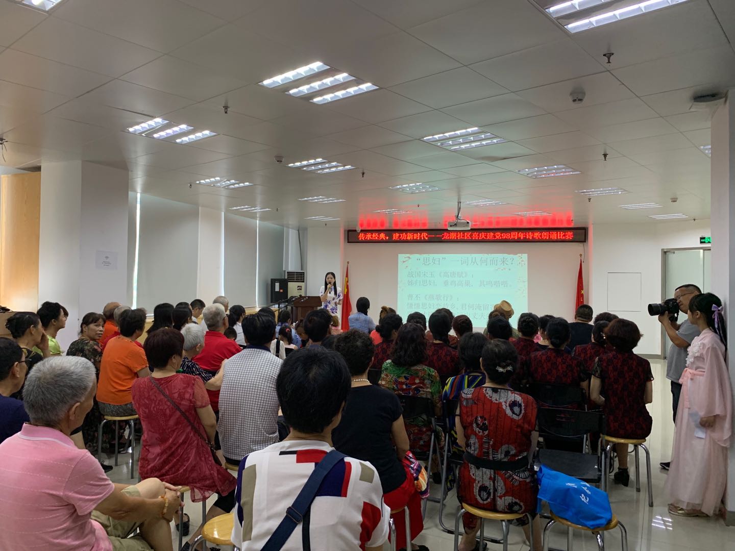 講座開始前,龍湖社區(qū)古詩新韻班的學(xué)員傾情奉上國學(xué)經(jīng)典新學(xué)堂歌——《游子吟》,為本次活動拉開了序幕。接著,龍湖社區(qū)的羅黎靜書記深情致辭,為“新時代中華優(yōu)秀傳統(tǒng)文化”項目走進社區(qū)表示榮幸和歡迎,“人生自有詩意,詩意美在四季。今天來到現(xiàn)場的每一個人都心中有愛,腹中有詩,對生命有著詩一般的向往和追求”,喚醒生命中的詩意,活動的意義也在于此。