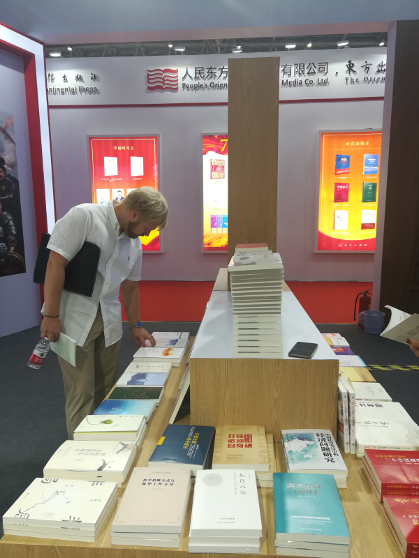 中國(guó)北京出版創(chuàng)意產(chǎn)業(yè)園區(qū)企業(yè)北京華景時(shí)代文化傳媒有限公司、禹田翰風(fēng)圖書有限公司、后浪等單位參展,本次展出的亮點(diǎn)圖書包括慶祝新中國(guó)成立70周年系列如《跨越(1949-2019)》《中國(guó)天眼:南仁東傳》《種子鐘揚(yáng)》《初心最美》等;展現(xiàn)北京城的歷史文化沿革、經(jīng)濟(jì)發(fā)展概貌的《北京秘密:你所不知道的全域文化之城》《北京城》等書;總結(jié)中國(guó)模式、中國(guó)道路,提供全球治理的中國(guó)方案的《40年改變中國(guó)》《中國(guó)道路的成功密碼》《強(qiáng)國(guó)長(zhǎng)征路》等圖書。
