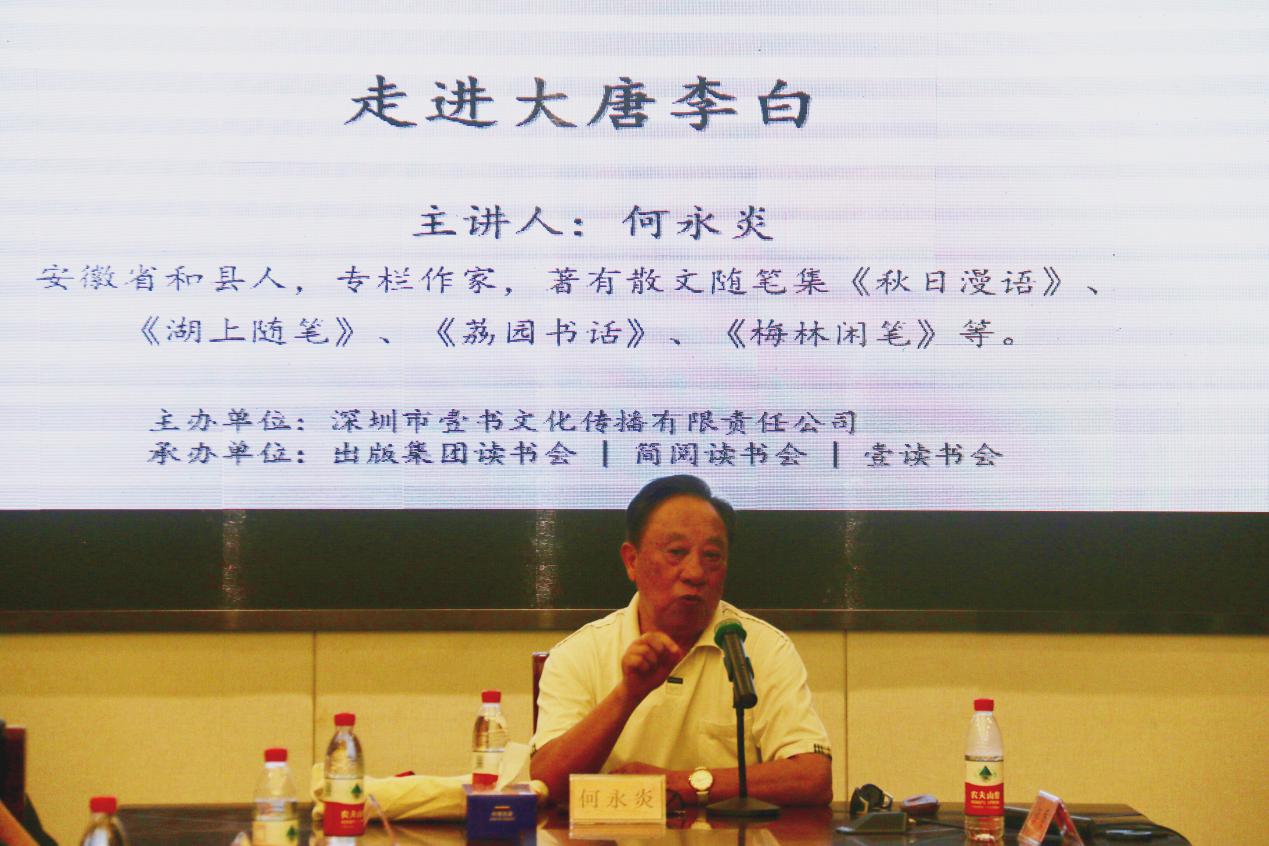 深圳新聞網(wǎng)訊 2019年8月31日下午,“福田區(qū)第三屆文學精品有聲閱讀藝術節(jié)”之“唐詩三百首”專場活動“走進大唐李白”公益文化講座暨最美唐詩朗誦會在簡閱書吧香蜜湖店三樓多功能室成功舉辦?;顒佑缮钲谑幸紩幕瘋鞑ビ邢挢熑喂?、深圳市書城文化投資控股有限公司主辦,出版集團讀書會、簡閱讀書會和壹讀書會承辦,本次活動吸引了眾多對中國傳統(tǒng)文化富有興趣的詩歌愛好者,活動開始前已座無虛席,靜候這場關于李白、關于詩歌的文化盛宴。