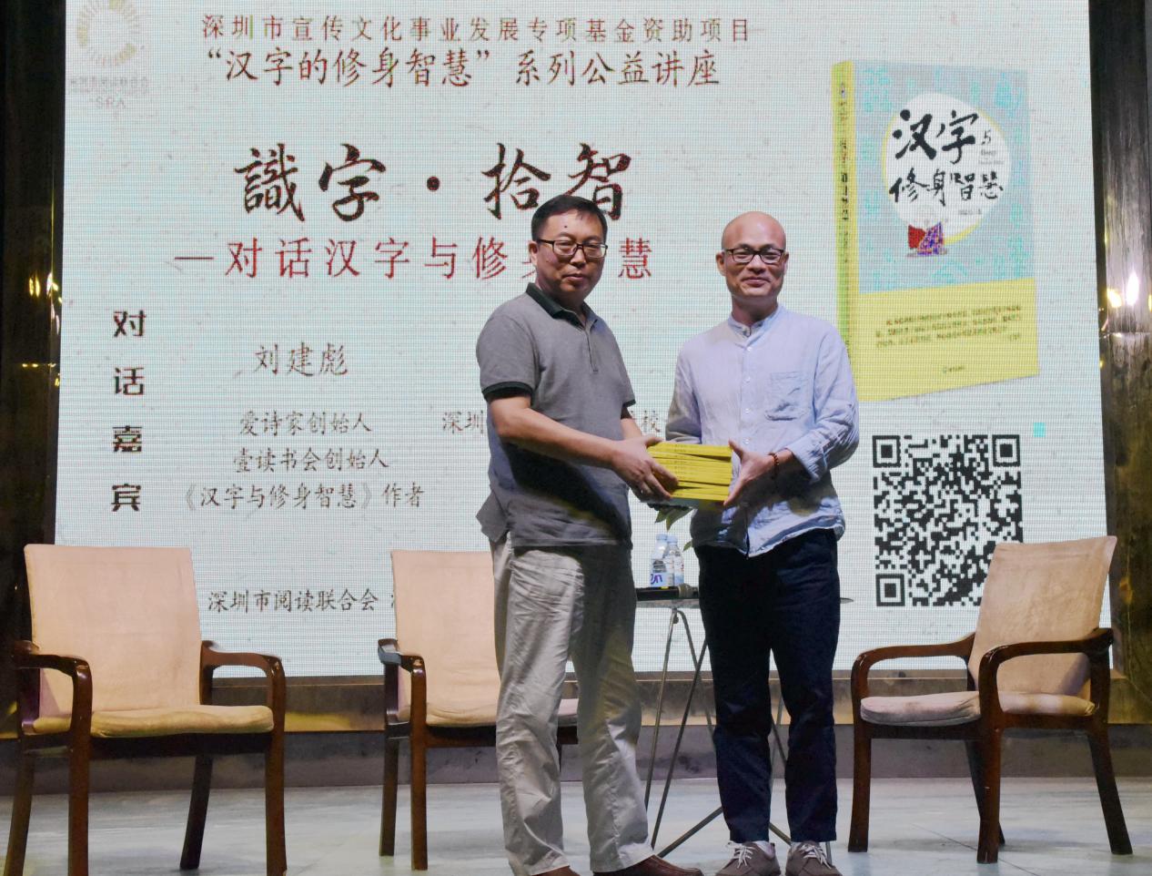 深圳新聞網(wǎng)訊 9月18日晚上7時(shí),由深圳市閱讀聯(lián)合會(huì)、深圳市壹書文化傳播有限責(zé)任公司和寶山讀書會(huì)共同主辦的“‘識(shí)字拾智’——對(duì)話漢字與修身智慧”公益文化講座在寶山技工學(xué)校寶山大舞臺(tái)拉開了序幕。據(jù)悉,這是由深圳市宣傳文化事業(yè)發(fā)展專項(xiàng)基金資助項(xiàng)目“漢字的修身智慧”的第三場(chǎng)公益文化講座,以劉建彪《漢字與修身智慧》新書分享為契機(jī),傳播漢字正能量,讓更多的青少年識(shí)字長(zhǎng)智,領(lǐng)略漢字文化之精妙。