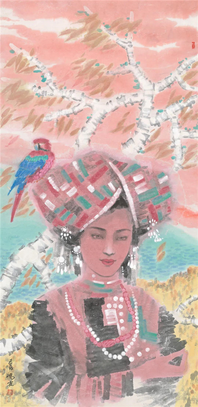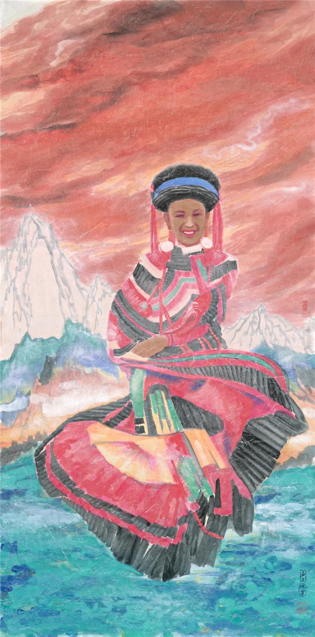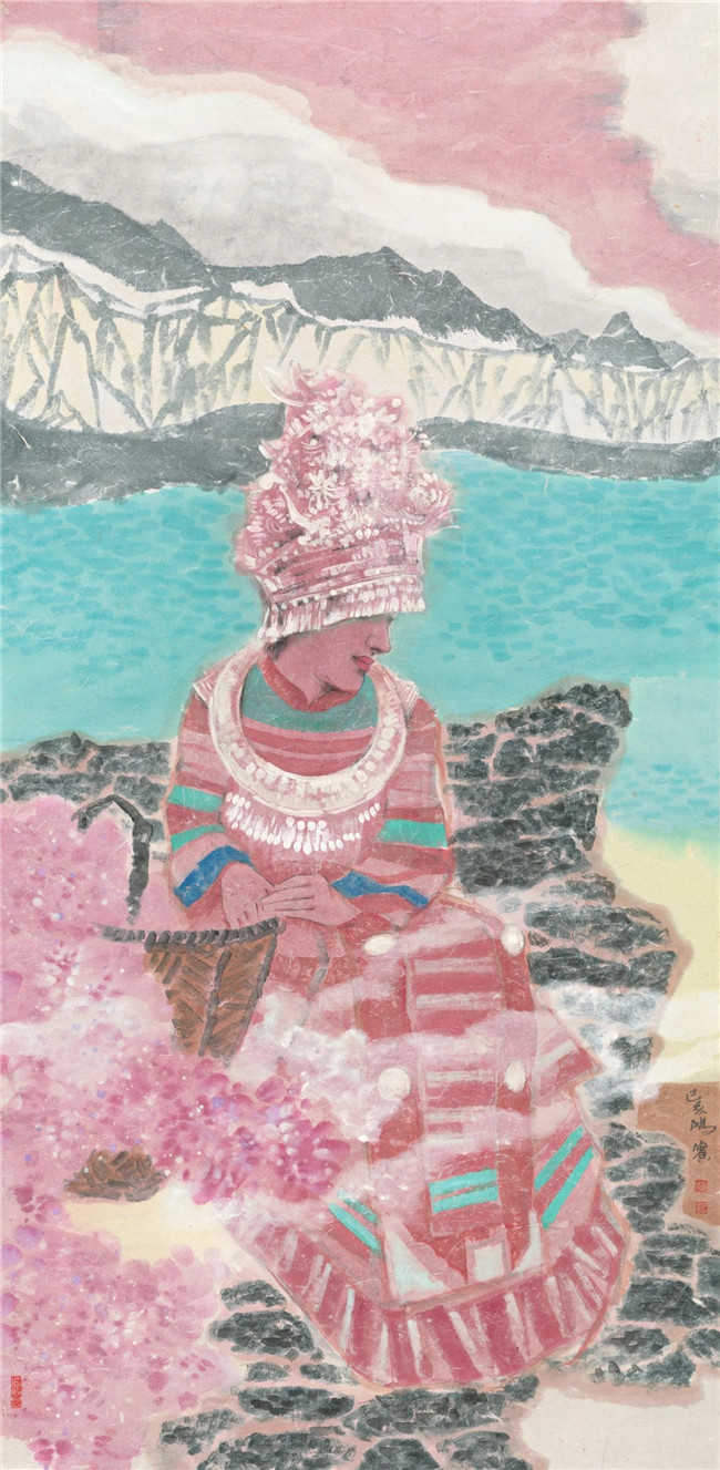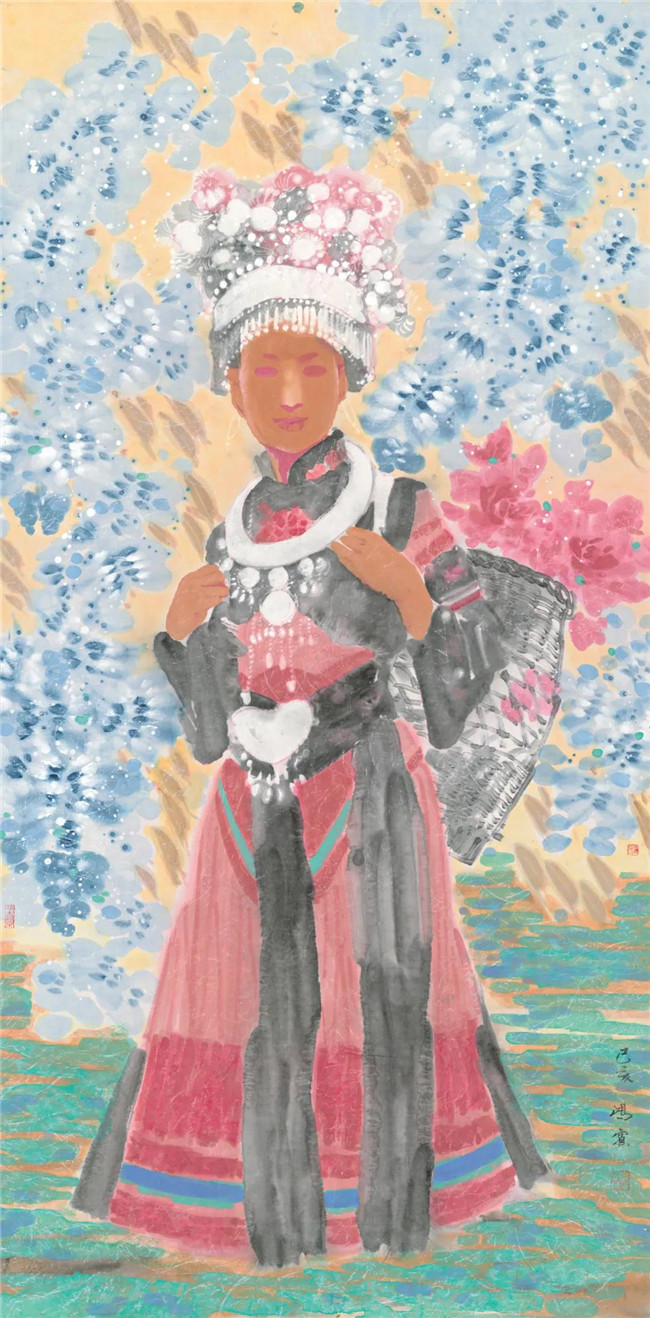 傈僳少女 彩墨 136X68cm 2019年