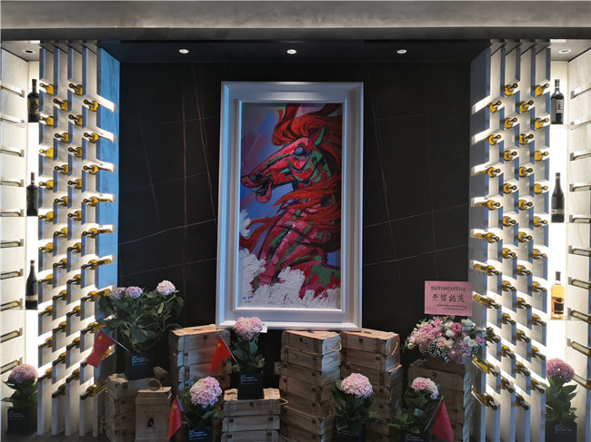 入戶大堂的《醉馬》和紅酒裝飾