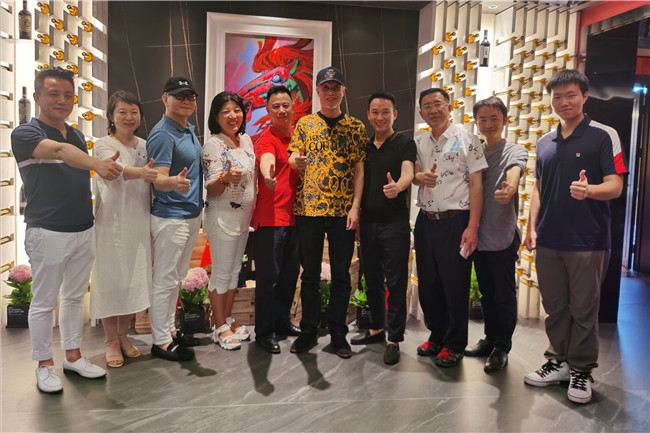 樊鴻賓美術(shù)館座落在珠海市香洲區(qū)內(nèi),旁接情侶路,目眺鳳凰灣,一派浪漫情調(diào),真是一塊滋養(yǎng)藝術(shù)的風(fēng)水寶地。展館所在的天宸大廈十六樓。面朝大海,視野開闊,藍(lán)天白云,碧海揚(yáng)帆,讓人心曠神怡。與此同時(shí),室內(nèi)樂聲輕伴、紅酒飄香,此景、此情映襯之下,緩步巡看展品,或細(xì)細(xì)靜賞佳作,自然而然有一份莫名舒適的藝術(shù)享受。