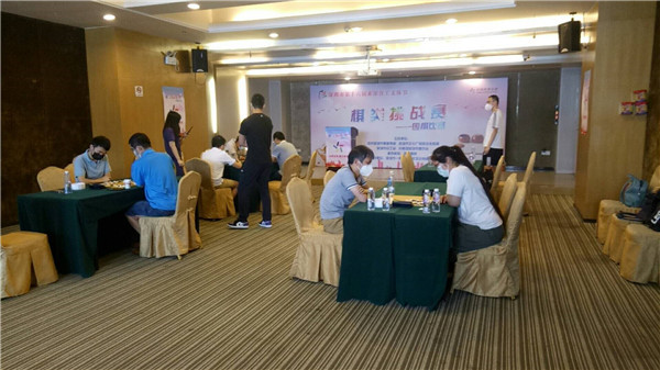 比賽分為線上預(yù)賽和線下決賽兩部分,經(jīng)過8月14和15日兩天五輪的激烈爭奪,張文浩、王辰兮、黎鶴群(女),陽柏林、李冰、肖耀希、陳志、李明達(dá)八名選手脫穎而出,獲得線下決賽入場券。8月16日線下決賽,單敗淘汰制,容不得半點(diǎn)閃失,高手相爭,凝神靜氣,你來我往。賽場內(nèi)靜寂無聲,棋盤上廝殺火熱。