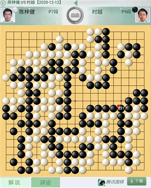第四臺(tái)快棋,由深圳隊(duì)的時(shí)越九段執(zhí)黑對(duì)陣衢州隊(duì)的陳梓健七段。開局白棋下方略顯松緩,黑棋優(yōu)勢,之后白棋對(duì)于右上方黑棋大模樣視而不見,被黑圍起大空,黑兵不血刃獲勝,時(shí)越執(zhí)黑中盤勝陳梓健。