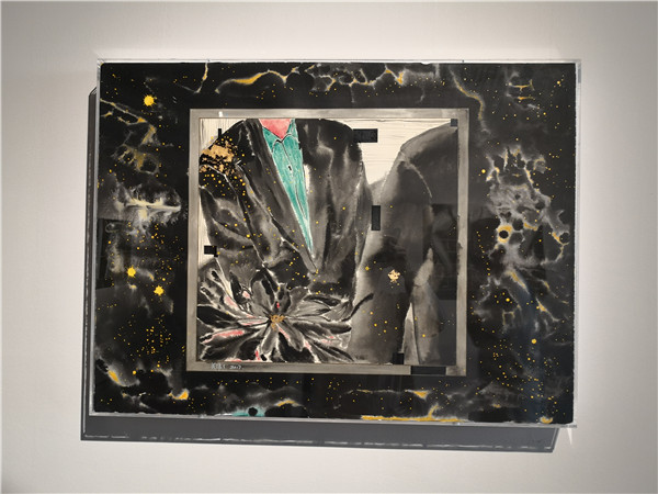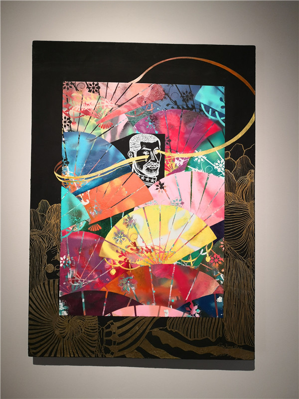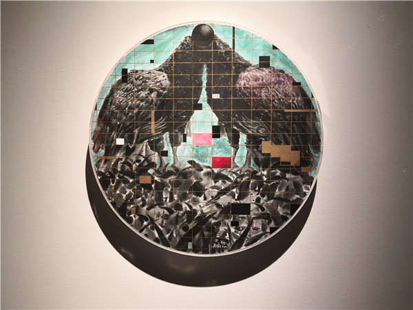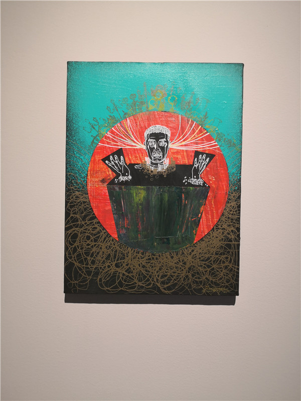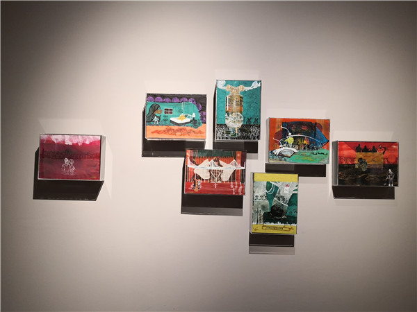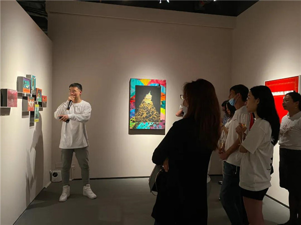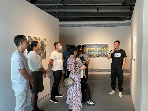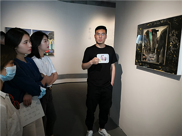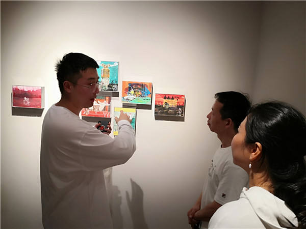 聯(lián)展現(xiàn)場(chǎng)三位作者向參觀者介紹創(chuàng)作經(jīng)歷及畫作意蘊(yùn)。