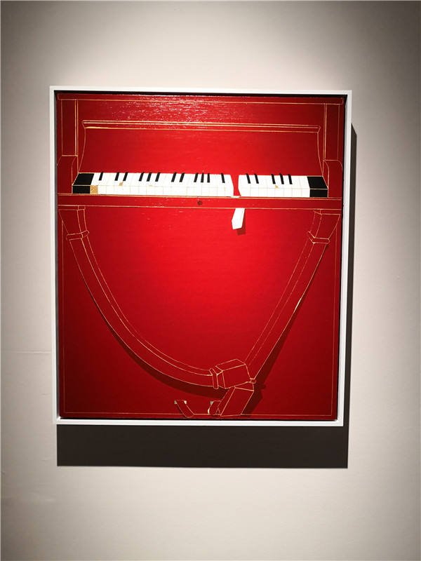 李吉亮與舒爾茨一樣,無法滿足于好好講一個(gè)故事,卻及其善于壓縮現(xiàn)實(shí)生活,他通過扁平化手法和硬邊緣的刻畫,釋放出另一個(gè)被我們忽視抑或假裝“視而不見”的隱秘世界。《鋼琴系列》作品展現(xiàn)結(jié)構(gòu)與結(jié)構(gòu)之間碰撞的張力,而在某些方面跟人有著高度相似性,臺(tái)上與臺(tái)下的反差,被人操縱的無奈、孤獨(dú)、狂歡和絕望。而在《剩余物》里,以梨子為例,果皮和果芯同樣重要,外在的光鮮,虛張聲勢(shì)和寂寥,所有的這一切,都和果芯深處緊緊聯(lián)系在一起。