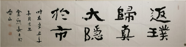 2011年隱居廣東中山,處江湖之遠(yuǎn)亦不忘躬耕,以書立德、以筆潤(rùn)身,專注于佛法經(jīng)文、家學(xué)文化和百家家訓(xùn)書法的研究,并創(chuàng)辦五福書院,通過(guò)教授古琴、書法、四書誦讀等形式開班授課,以中國(guó)傳統(tǒng)文化踐行家學(xué)文化。歸隱而不忘憂國(guó),金熙長(zhǎng)先生自隱居以來(lái),在珠海、中山、深圳、上海等地舉辦了多次《以書立德、以筆潤(rùn)身——常福居士百家家訓(xùn)、百種心經(jīng)書法作品全國(guó)巡展》;2020年8月,金熙長(zhǎng)先生的《方正字跡-金熙長(zhǎng)標(biāo)題體》在方正字庫(kù)正式上線。
