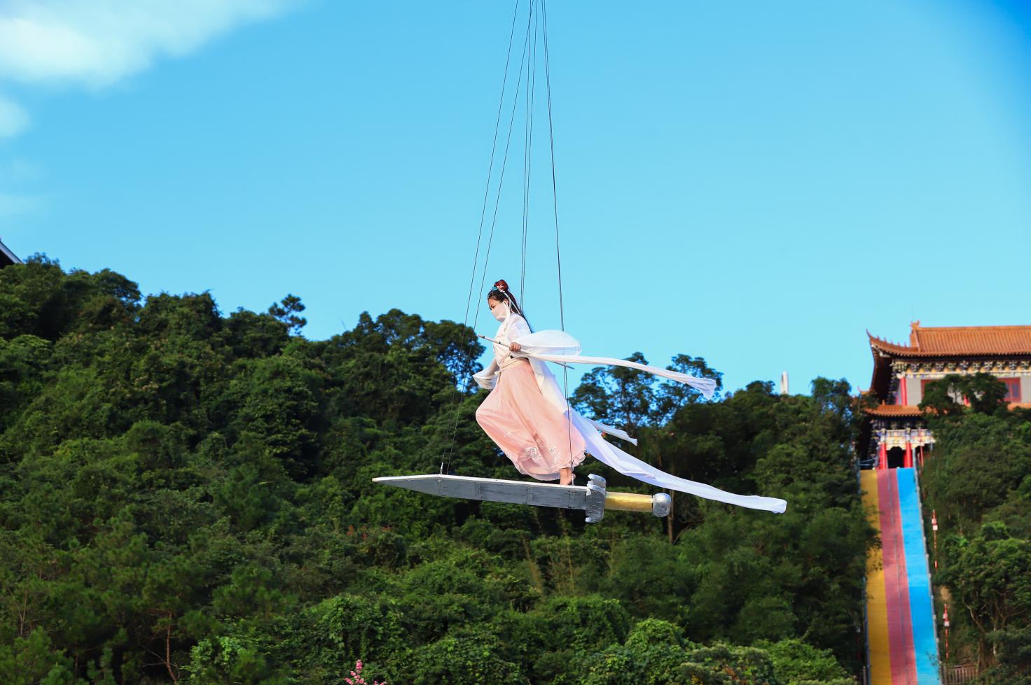 此外,觀音山上還能“御劍飛行”啦!一經(jīng)推出,瞬間成為全網(wǎng)飛天體驗中的一股清流,吸引眾多網(wǎng)友的關注,不禁感嘆,花式之豐富有趣。作為抖音爆火的項目網(wǎng)紅飛天威亞,一直以來備受游客青睞!國慶期間,來觀音山,飛天威亞還能玩出新花樣,為游客提供御劍飛行模式,打造獨特飛天體驗!