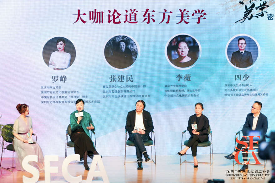 來自深圳市時(shí)尚創(chuàng)意、工業(yè)設(shè)計(jì)、服裝設(shè)計(jì)、文化傳播、主流媒體等領(lǐng)域的上百位嘉賓與線上觀眾一起見證論壇盛況。中國文聯(lián)副主席,中國民間文藝家協(xié)會主席潘魯生與李槍、張建民、李薇三位主講嘉賓以“東方美學(xué)密碼”為主題,分別從 《東方美學(xué)密碼的物質(zhì)化轉(zhuǎn)換》《東方美學(xué)與品牌創(chuàng)新實(shí)踐之路》《設(shè)計(jì)創(chuàng)作中的“道與器”》三個(gè)角度,分享了東方美學(xué)在當(dāng)代藝術(shù)界、工業(yè)設(shè)計(jì)、服裝設(shè)計(jì)等領(lǐng)域以及現(xiàn)實(shí)生活中的應(yīng)用和未來可能性。公眾不僅從名師大家的思想與洞見中感知東方美學(xué)綿延不絕的生命力,也找到了東方美學(xué)能夠引領(lǐng)世界新時(shí)尚的“密碼”所在。