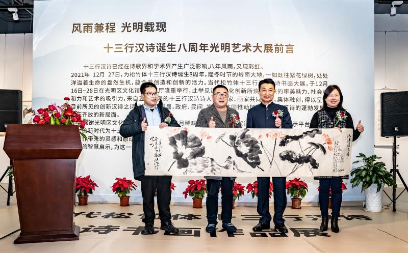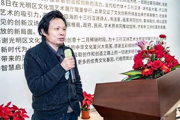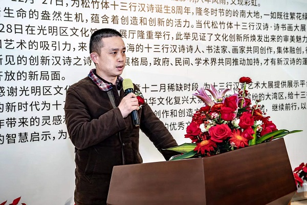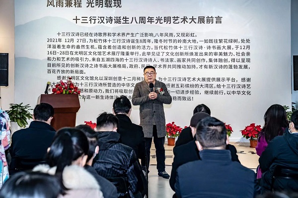 讀特客戶(hù)端·深圳新聞網(wǎng)2021年12月29日訊(記者 田志強(qiáng))近日,國(guó)家社科基金項(xiàng)目“當(dāng)代漢詩(shī)創(chuàng)新詩(shī)體研究”階段性成果展——十三行漢詩(shī)書(shū)畫(huà)作品展,于光明區(qū)文化館成功舉辦。本次展覽集中展示本項(xiàng)目重要研究成果、全國(guó)各地新漢詩(shī)詩(shī)人的原創(chuàng)十三行漢詩(shī)之書(shū)畫(huà)作品等。十三行漢詩(shī)創(chuàng)立八年以來(lái),得到了海內(nèi)外詩(shī)人的廣泛關(guān)注,在國(guó)家社科基金研究團(tuán)隊(duì)精研闡釋的基礎(chǔ)上,得到了學(xué)術(shù)界的肯定。