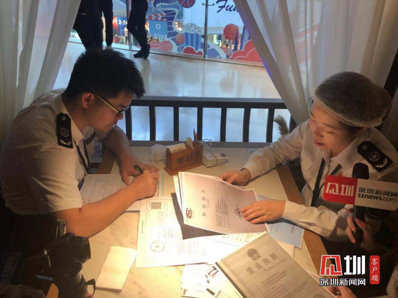 記者跟隨執(zhí)法人員一行來到位于光明區(qū)馬田街道的大仟里商業(yè)廣場(chǎng),由志愿者代表現(xiàn)場(chǎng)隨機(jī)抽選兩家餐廳。此次光明市場(chǎng)監(jiān)管局采取了交叉檢查的方式,根據(jù)《深圳市餐飲服務(wù)食品安全量化檢查表》對(duì)兩家餐飲單位進(jìn)行詳細(xì)檢查。