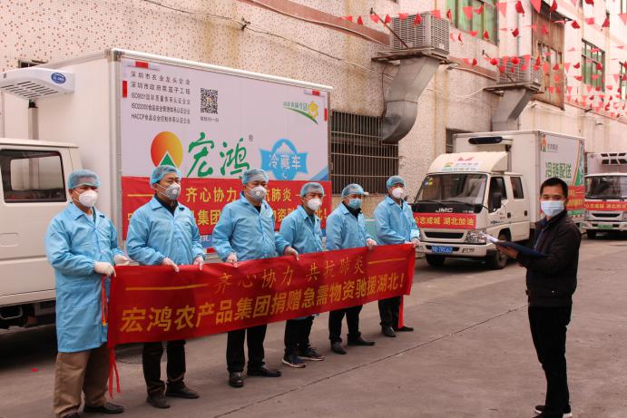 見圳客戶端·深圳新聞網(wǎng)2020年2月12日訊 2月9日,載有豬肉、冷凍品、蔬菜等疫區(qū)人民急缺的農(nóng)副產(chǎn)品的卡車從宏鴻農(nóng)產(chǎn)品集團總部駛出,25個小時之后,這一批總價值近30萬元人民幣的應(yīng)急物資將運抵湖北省孝感市。
