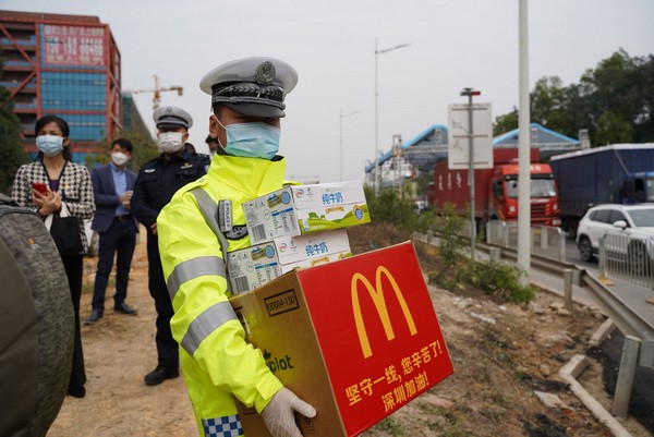 你們在一線戰(zhàn)疫,我們來為你補給!隨后,市關(guān)愛辦攜手伊利集團、麥當(dāng)勞先后前往光明羌下公安檢查站、寶安區(qū)松安防疫檢查點,為正在一線忙碌的工作人員,送上愛心牛奶與熱乎乎的愛心午餐?!澳銈冃量嗔恕薄ⅰ袄^續(xù)加油”……每發(fā)放一次牛奶與午餐,工作人員都不忘了戰(zhàn)疫者們致敬致謝。