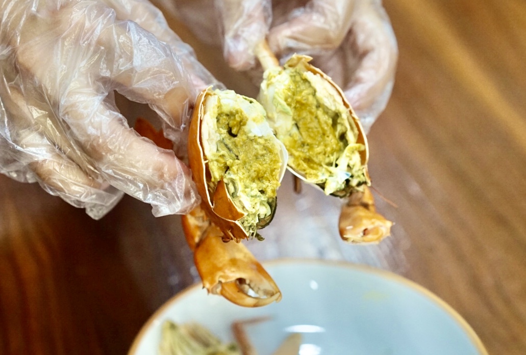 番禺美食家屈九先生說,石樓鎮(zhèn)的咸淡水交界區(qū)域是產(chǎn)蟹佳地。他曾說,如果有幸遇上換殼期的重皮奄仔蟹則更佳,硬殼底下有一層新生的軟殼,蟹膏濃滑似流沙蛋黃,非常滋味。成隆行廣州區(qū)域負(fù)責(zé)人楊先生則說,深圳本地奄仔蟹量有限,以精養(yǎng)為主。