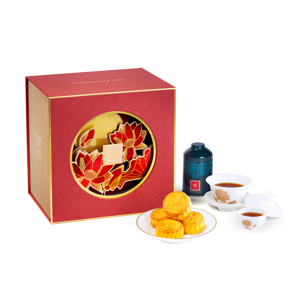 除各式經(jīng)典禮盒外,今年特別推出四個迷你奶黃月餅輕巧裝,而由米其林星級名廚、半島酒店中式餐飲顧問鄧志強師傅監(jiān)制構(gòu)思的桂圓及核桃兩款奶黃月餅將載譽歸來。其中,兩款迷你奶黃月餅設有獨立盒裝及星廚賞月禮盒,禮盒裝潢精美,紅色禮盒盛載以上兩款特色口味月餅各四個、一罐半島中式名茶、一套限量版陶瓷蓋碗及一對茶杯,與親友用以沏茶賞月,別有一番雅興。