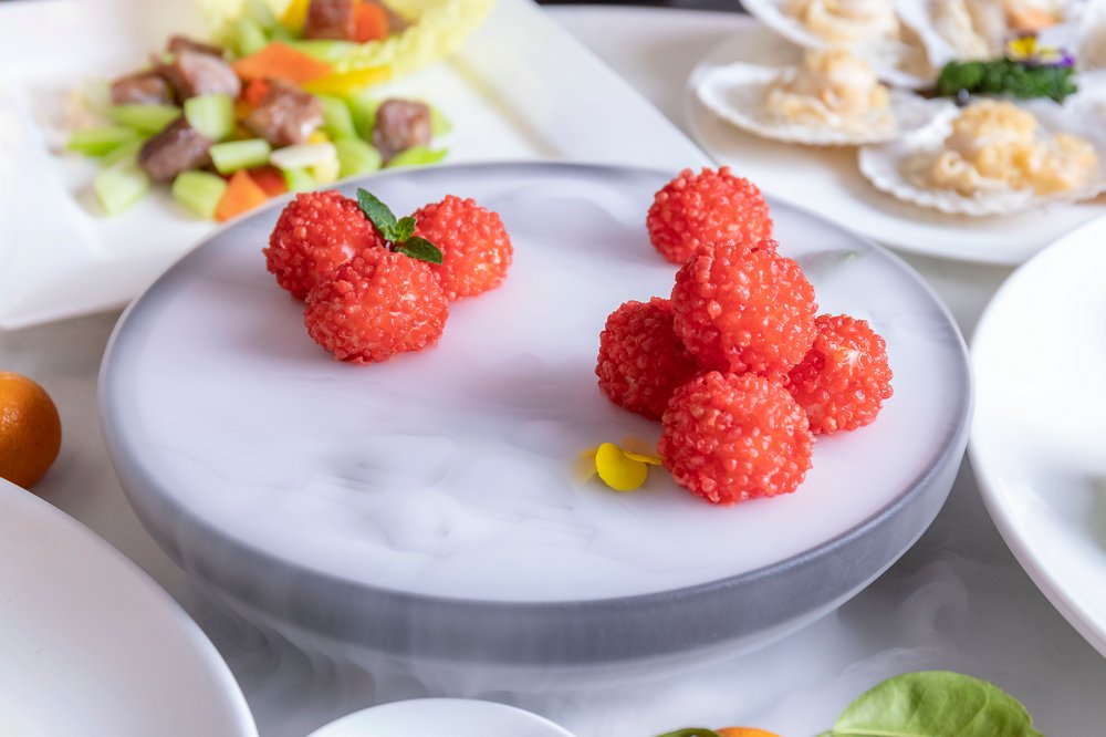 除了兩款福袋,另外還有5款年夜飯可以選擇,“迎春接福宴”、“闔家團圓宴”、“萬事如意宴”、“花開富貴宴”以及“金玉滿堂宴”。金茂深圳JW萬豪酒店中餐廳主廚劉師傅精心設(shè)計的賀歲菜肴除了擺盤講究之外,亦道道有講究。如:寓意“風(fēng)生水起”的三文魚生撈起,以三文魚生為主要食材,配以六款色彩繽紛的蔬菜絲,享用時眾賓客齊齊用筷子高高撈起,在開席即可討個“越撈越旺”的好彩頭!還有上菜時冒出“仙氣”的爆汁紅顏妃子笑,寓意“吉祥如意”、寓意“牛氣沖天”的香芹腰果牛肉粒、“年年有余”的清蒸老虎斑、“五谷豐登”的總廚鮑汁炒飯等多款吉祥菜式。