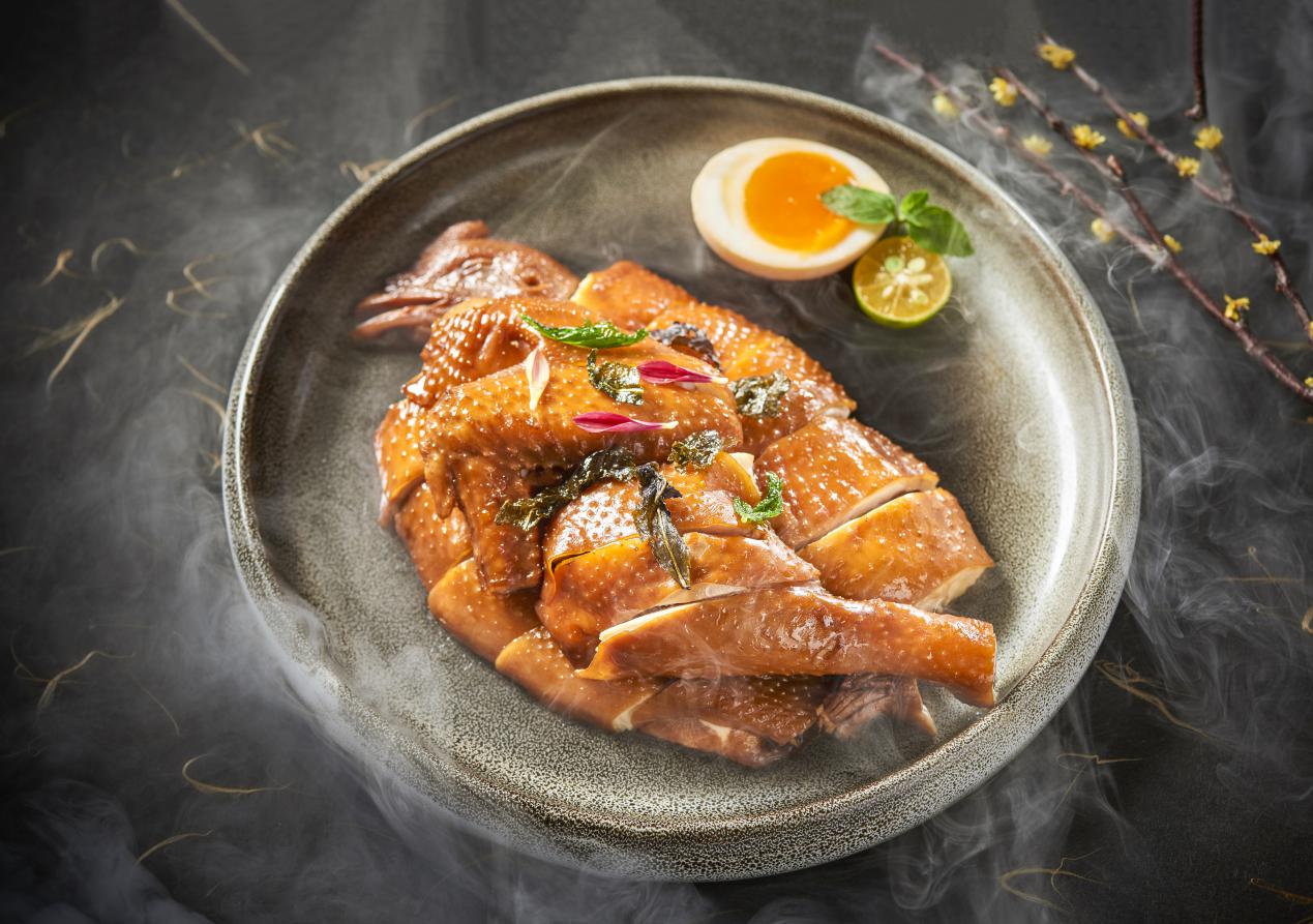 西湖的龍井遇上廣東的走地雞,是西子韻味與羊城粵味完美碰撞,配以煙熏加熱技法,龍井清香撲鼻而來(lái),肉質(zhì)鮮嫩,惹味可口,粵式美味是也。