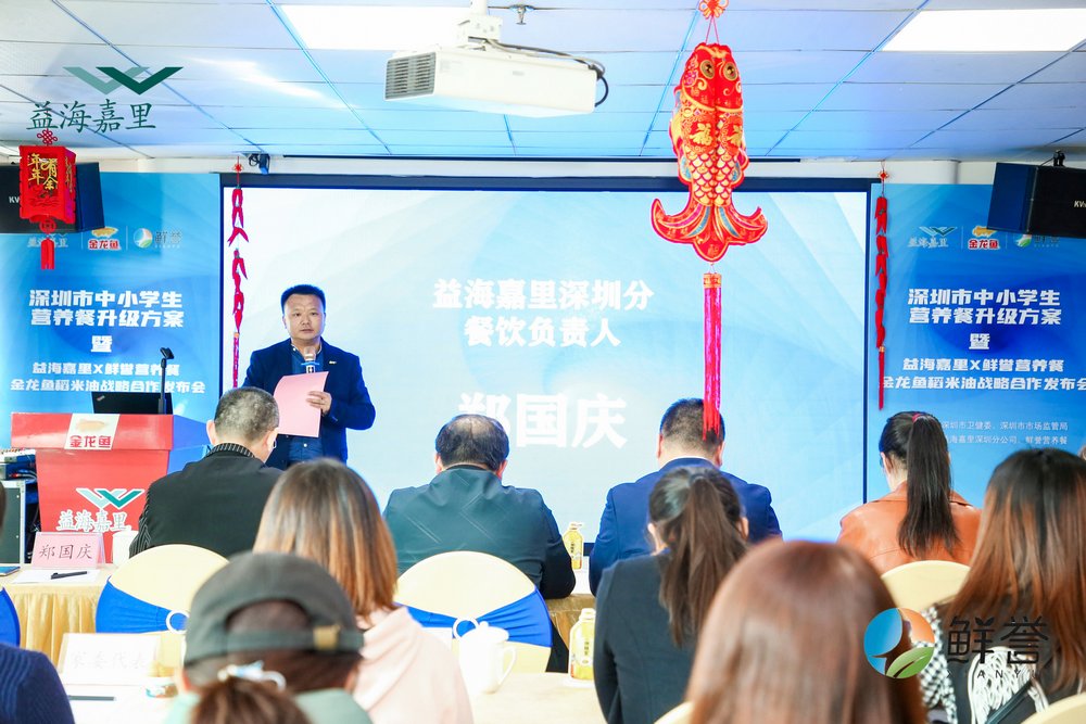 會(huì)議開場(chǎng)由益海嘉里深圳分餐飲負(fù)責(zé)人鄭國(guó)慶先生介紹益海嘉里的歷程并對(duì)鮮譽(yù)營(yíng)養(yǎng)餐出品表示肯定,隨后鮮譽(yù)總經(jīng)理嚴(yán)資旺先生敘述了在營(yíng)養(yǎng)餐升級(jí)過(guò)程中的努力,通過(guò)營(yíng)養(yǎng)師和專業(yè)博士對(duì)營(yíng)養(yǎng)餐數(shù)據(jù)和內(nèi)容的講述,讓在座的家委代表們更加了解了營(yíng)養(yǎng)餐升級(jí)的必要性和可行性。益海嘉里稻米油項(xiàng)目的張波先生和朱若維女士以視頻的方式講述了金龍魚稻米油的來(lái)源以及榮譽(yù),目前金龍魚稻米油已經(jīng)在日本上市多年并作為中小學(xué)生指定用油長(zhǎng)期使用。此外,發(fā)布會(huì)現(xiàn)場(chǎng)還舉行了益海嘉里與鮮譽(yù)戰(zhàn)略合作的授牌及剪彩儀式。