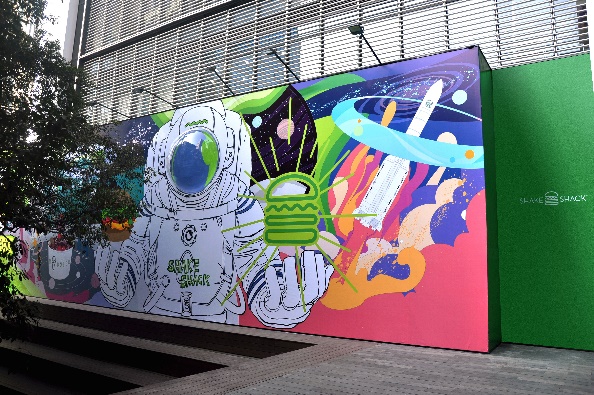 Shake Shack一直熱衷于將品牌文化、潮流趨勢與當(dāng)?shù)厣罘绞较嗳诤?,為品牌帶來全新靈感。作為深圳首店正式開業(yè)前的預(yù)告,Shake Shack攜手深圳先鋒藝術(shù)家李昱昱 ? (Y oyo L ee )在深圳萬象天地特別推出了別具匠心且富有致敬意義的巨幅創(chuàng)意圍擋。