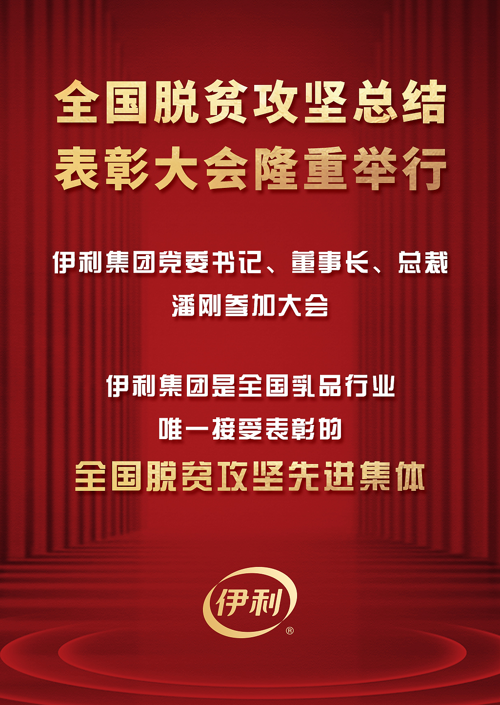 2月25日,全國脫貧攻堅(jiān)總結(jié)表彰大會在北京隆重舉行。伊利集團(tuán)是乳品行業(yè)全國脫貧攻堅(jiān)先進(jìn)集體唯一獲獎(jiǎng)企業(yè)。