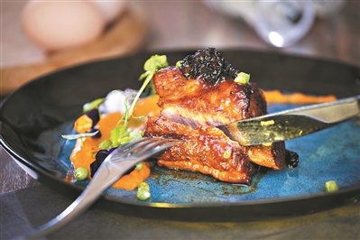 小龍蝦、大閘蟹、小青龍三者都有螯,取名為鰲斗火鍋,在炭火銅鍋的翻騰中,異常鮮美。
