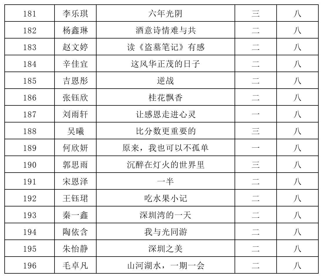 自2021年1月,活動征稿啟動以來,獲得了深圳市廣大中小學(xué)生、教師、文學(xué)愛好者的熱烈響應(yīng)積極參與,吸引了深圳百余所學(xué)校的上萬人關(guān)注報(bào)名?,F(xiàn)公布北師大南山附屬學(xué)校中學(xué)部晉級復(fù)賽名單如下: