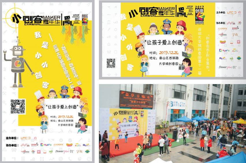 深圳大學城創(chuàng)意園主辦,活動以創(chuàng)意街市+創(chuàng)業(yè)集市的形式,展示、銷售孩子的創(chuàng)意產品,并結合專業(yè)創(chuàng)客實驗室、3D打印、增強/虛擬現實、機器人等科技、技術,讓孩子們在輕松投入的氛圍中體驗最前沿的科技產品和創(chuàng)客項目?!皠?chuàng)新”、“實踐”、“分享”,活動旨在培養(yǎng)孩子們的動手創(chuàng)作能力、社會交往技能、團隊協(xié)作、實踐技巧、集體榮譽,拓展孩子們的創(chuàng)新創(chuàng)意思維,讓孩子愛上創(chuàng)造,逐步提升孩子的綜合能力,為將來更好地適應社會的發(fā)展趨勢打好基礎。