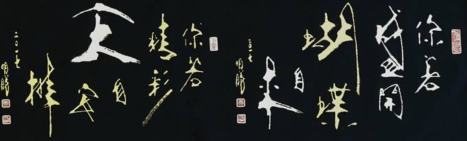 黃明勝從事書法與篆刻鉆研已逾30年,他認為:美感的建立才是學習藝術的第一步,而非技法;奠定了美感的基礎再從中建立自己的價值,隨波不逐流。秉持『自出新意,不踐古人』的理念,書寫從未臨帖,歷經(jīng)數(shù)十載,而今創(chuàng)作出融合中國傳統(tǒng)藝術與現(xiàn)代風格的書法創(chuàng)新體裁—『書畫體』。