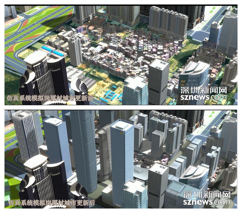 感謝城市仿真系統(tǒng),我們可以看到模擬的崗廈村城市更新前后的面貌變遷
