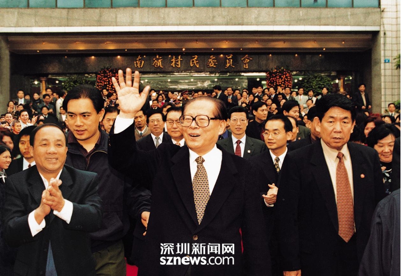 2000年2月22日,江澤民同志(中)視察南嶺村