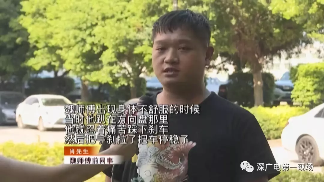 蕭先生是魏師傅的前同事,當(dāng)天正好乘車(chē)出行,他親歷了魏師傅突發(fā)狀況的整個(gè)經(jīng)過(guò)。他告訴記者,魏師傅忍著巨大的痛苦,將車(chē)子停下之后,馬上向他求助。