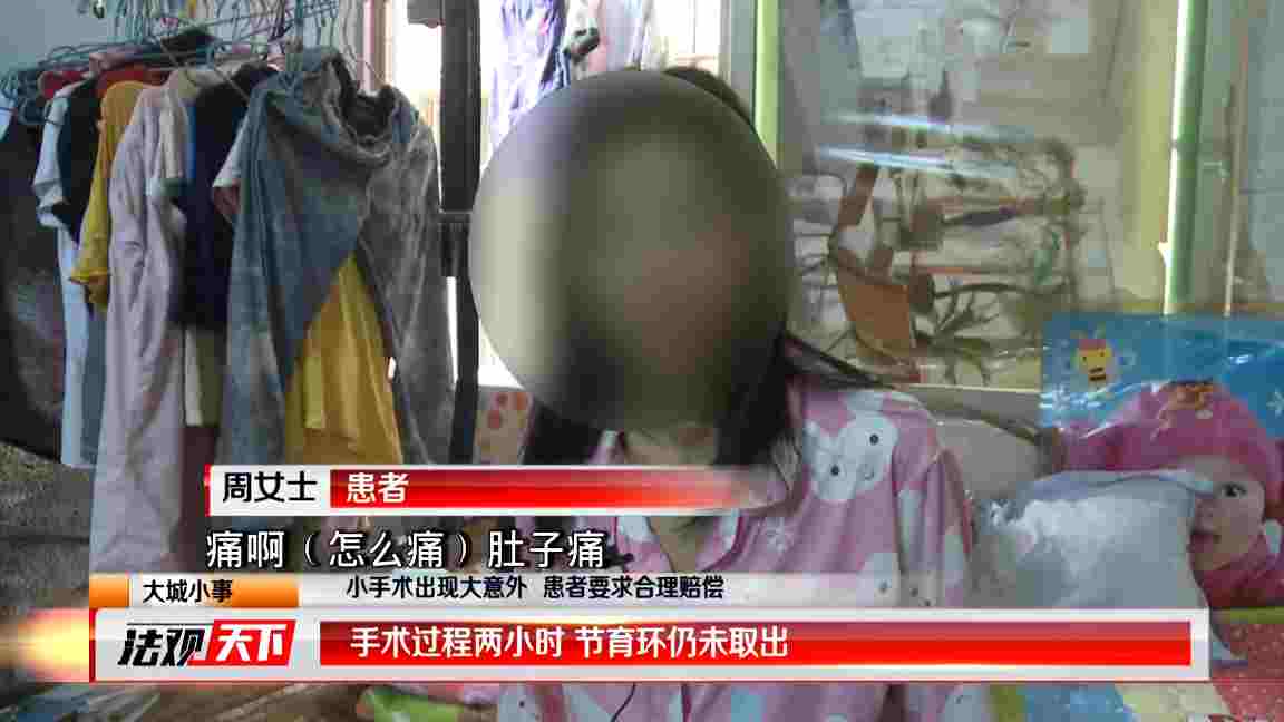 周女士說,原本醫(yī)生在電話中說要打麻藥,但是到了手術(shù)臺卻一直沒有進行這個步驟。而接下來的手術(shù)過程也非常不順利,整整進行了兩個小時,節(jié)育環(huán)仍未取出。由于周女士疼痛難忍,最終手術(shù)不得不停止。