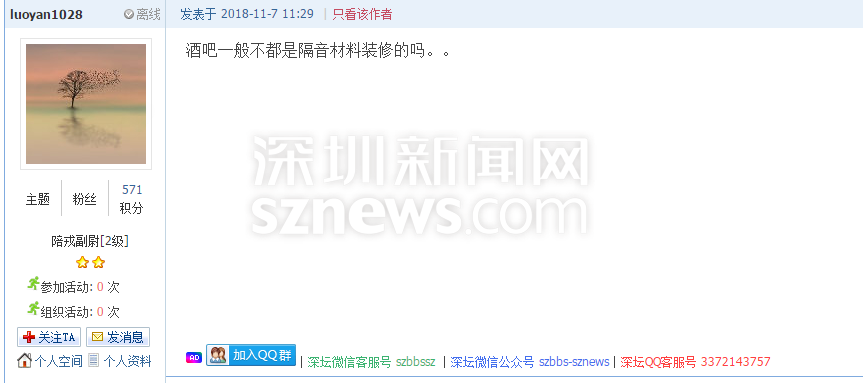 “酒吧一般不都是隔音材料裝修的嗎?”網(wǎng)友“l(fā)uoyan1028”在回復該帖文時提出了自己的疑問。眾所周知,高速公路兩旁,常常設有隔音板以減少噪音污染,降低對周圍居民的影響。那么作為以營利為目的,并向公眾開放、消費者自娛自樂的歌舞、游藝的酒吧場所,裝修時使用隔音材料就更是必不可少了。只是,這所米蘭國際酒吧真的安裝了隔音板嗎?