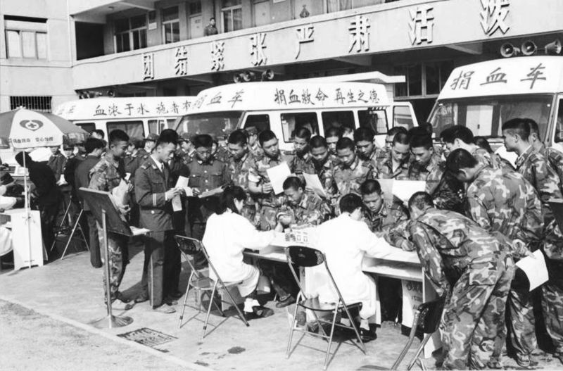 1997年,深圳有三輛伊維柯捐血車(chē),3月1日一起開(kāi)到部隊(duì),官兵爭(zhēng)相獻(xiàn)血。 余海蓉 攝