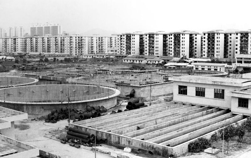 1984年,公司承建的第一個市政重點工程——濱河水質(zhì)凈化廠(一期)(1986年攝)。馬樹華攝