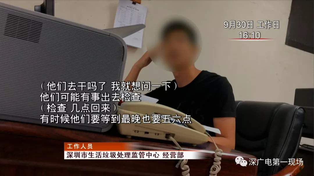 暗訪組了解到,這間辦公室屬于深圳市生活垃圾處理監(jiān)管中心經(jīng)營部,而這間辦公室內(nèi)的兩名工作人員直到規(guī)定的下班時(shí)間5點(diǎn)半,也沒有回到辦公室。聯(lián)合暗訪組還發(fā)現(xiàn),216辦公室的隔壁214辦公室也同為經(jīng)營部,里面有四個(gè)辦公卡座,但只剩下一名男性工作人員。