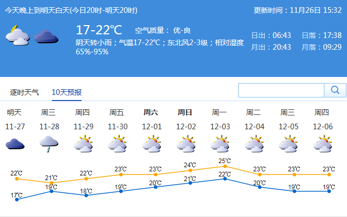 市氣象局發(fā)布未來十天天氣預(yù)報(bào)(數(shù)據(jù)更新于11月26日15時(shí)32分)
